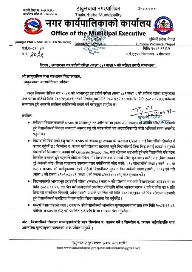 कक्षा ५ र ८ को परीक्षा तयारी सम्बन्धी सूचना!!