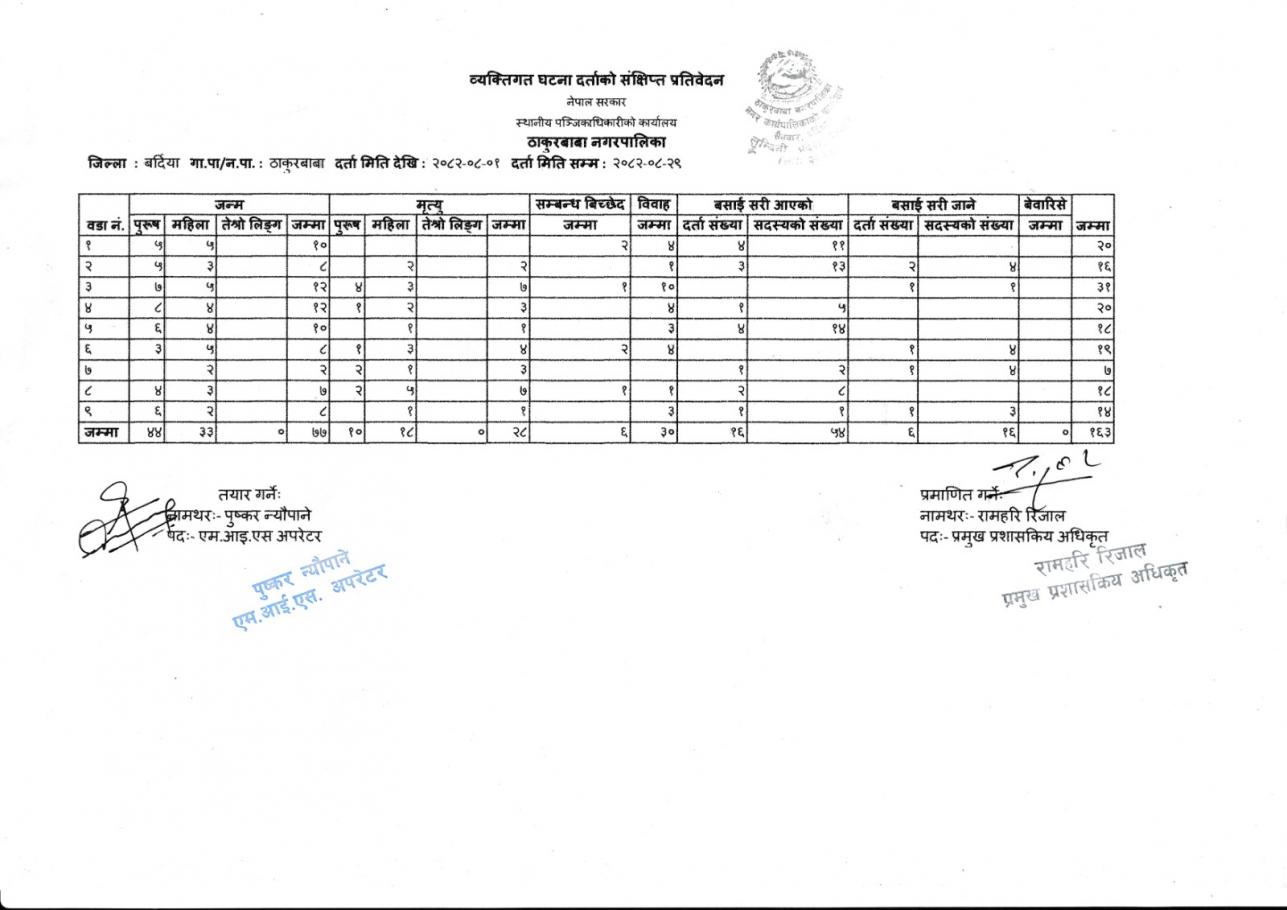 ठाकुरबाबा नगरपालिका, नगर कार्यपालिकाकाे कार्यालय