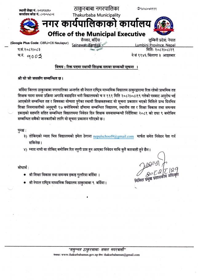 » रिक्त पदमा स्थायी शिक्षक सरूवा सम्बन्धी सूचना!!
