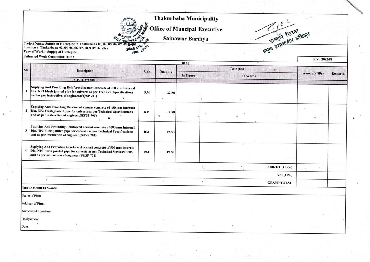 "ह्युमपाइप" का लागि दरभाउपत्र पेश गर्ने सम्बन्धी सार्वजनिक सूचना!!