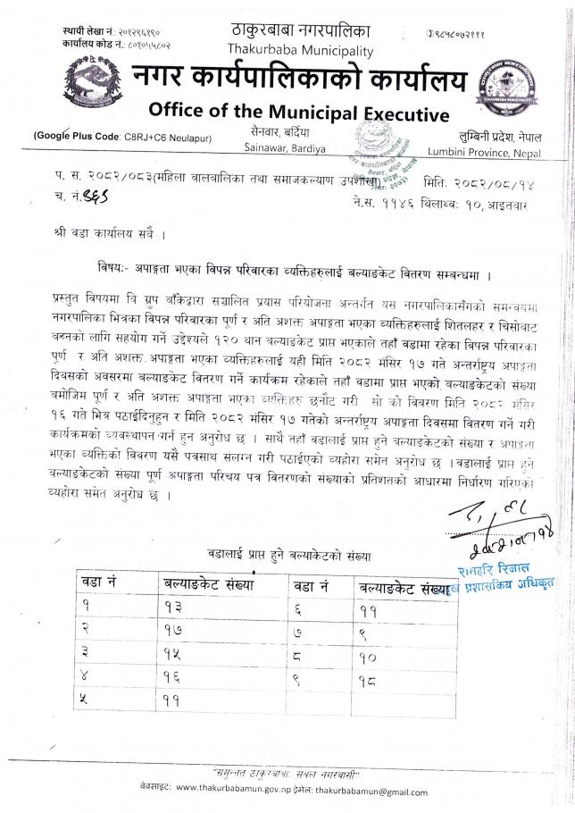 ठाकुरबाबा नगरपालिका, नगर कार्यपालिकाकाे कार्यालय