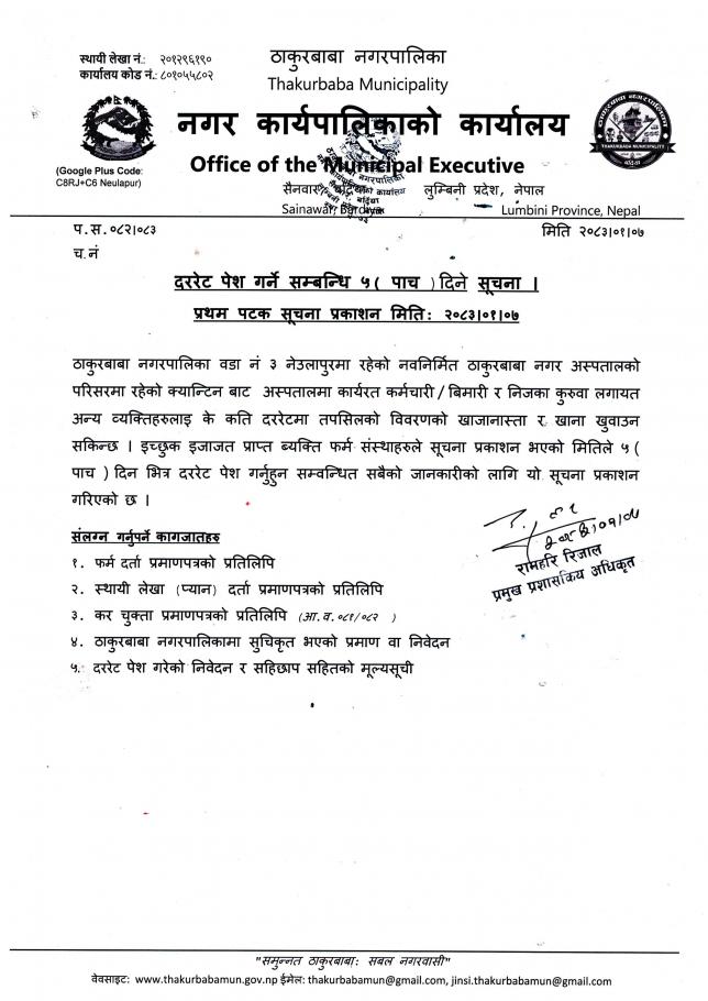 ठाकुरबाबा नगरपालिका, नगर कार्यपालिकाकाे कार्यालय