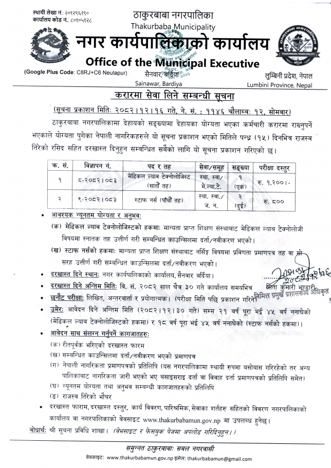 करारमा सेवा लिने सम्बन्धी सूचना!! (प्रकाशित मितिः २०८२|१२|१६ गते)